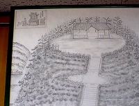 | 鳥居と広場 手前に公民館 | 一番手前の石碑が庚申塔 | 昭和40年以前の神社の絵図 (両谷公民館蔵) |